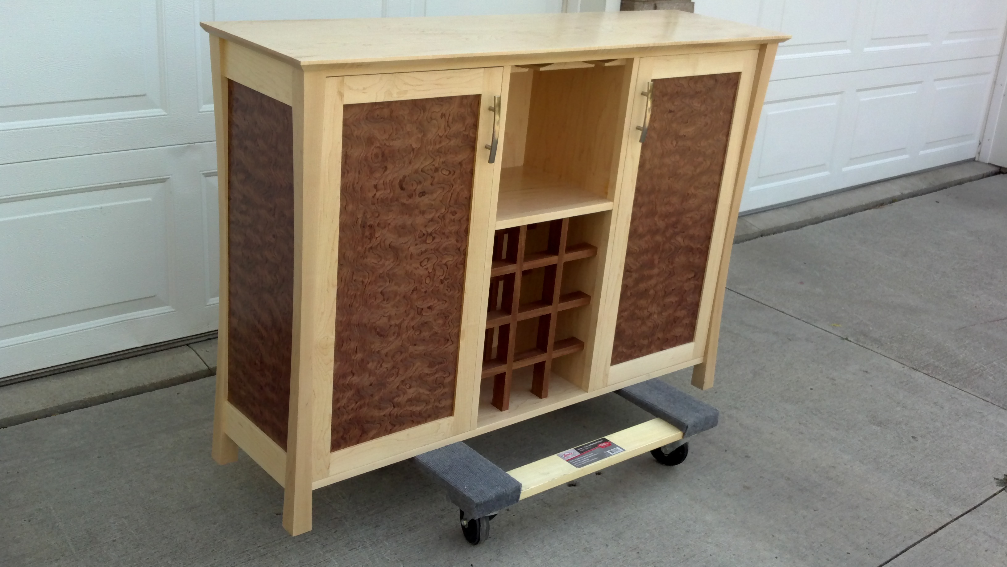 Buffet for my sister, hard maple frame construction, the door inlays are done in curly bubigna.